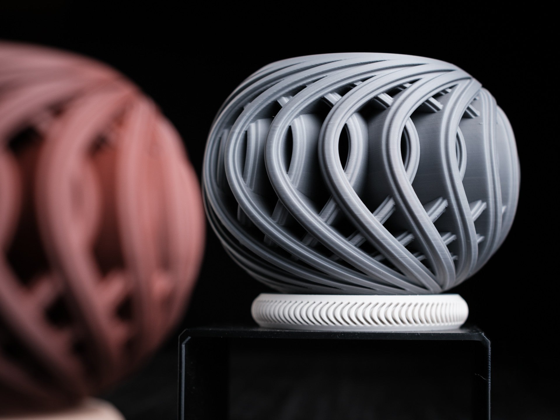 Be captivated by the hypnotic design of the Morph Planter. Its unique, interconnected woven texture creates an almost liquid, transforming shape, perfectly balanced on a contrasting, detailed base.